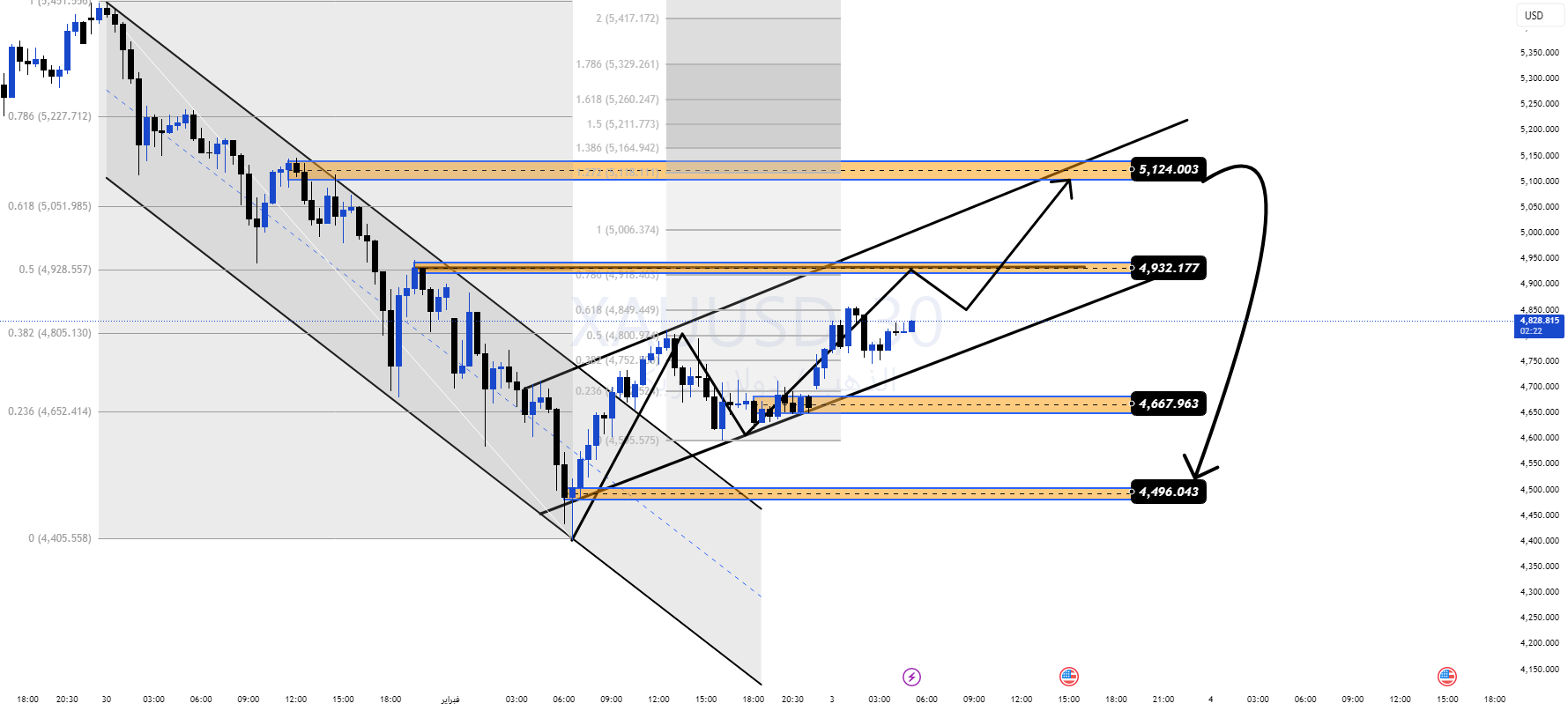 Gold is currently in a highly volatile environment after falling sharply below the $5,000 level, reflecting an aggressive re-pricing ahead of significant macro uncertainty. The market has moved from smooth trending behavior to a liquidity-driven and reactive phase where price moves rapidly between key technical areas.