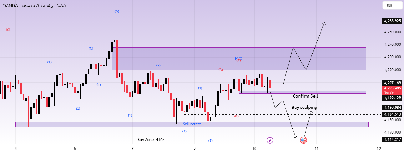 Above this is the resistance area 4235-4238, which coincides with the previous FVG/resistance area on the chart – suitable for watching and selling on a rebound in price.