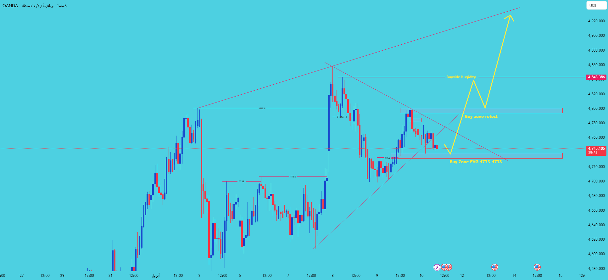 As long as the price remains above 4730, the structure remains bullish. A break above 4,800 would open the way for liquidity to reach 4,840-4,850.