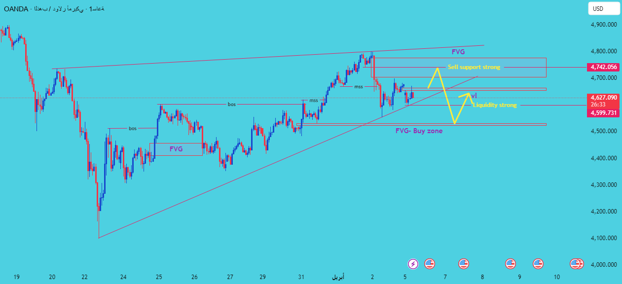 However, the uptrend is under pressure around the 4,700-4,750 level, an area that coincides with the main FVG zone and previous supply zone. Recent rejections in this area suggest sellers are still defending the cap.